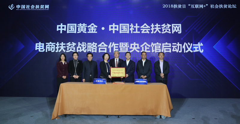 中國(guó)黃金集團(tuán)有限公司黨委副書記、工會(huì)主席王曉梅出席論壇,并代表集團(tuán)公司出席電商扶貧戰(zhàn)略合作暨央企館啟動(dòng)儀式